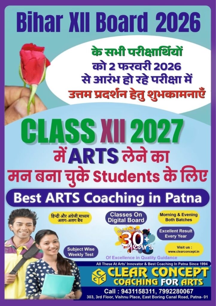 Students planning for Class XII Arts 2027 are encouraged to begin their preparation early under expert guidance. With the right coaching, structured study plan, and regular testing, success in the Bihar Board examinations becomes achievable and stress-free.