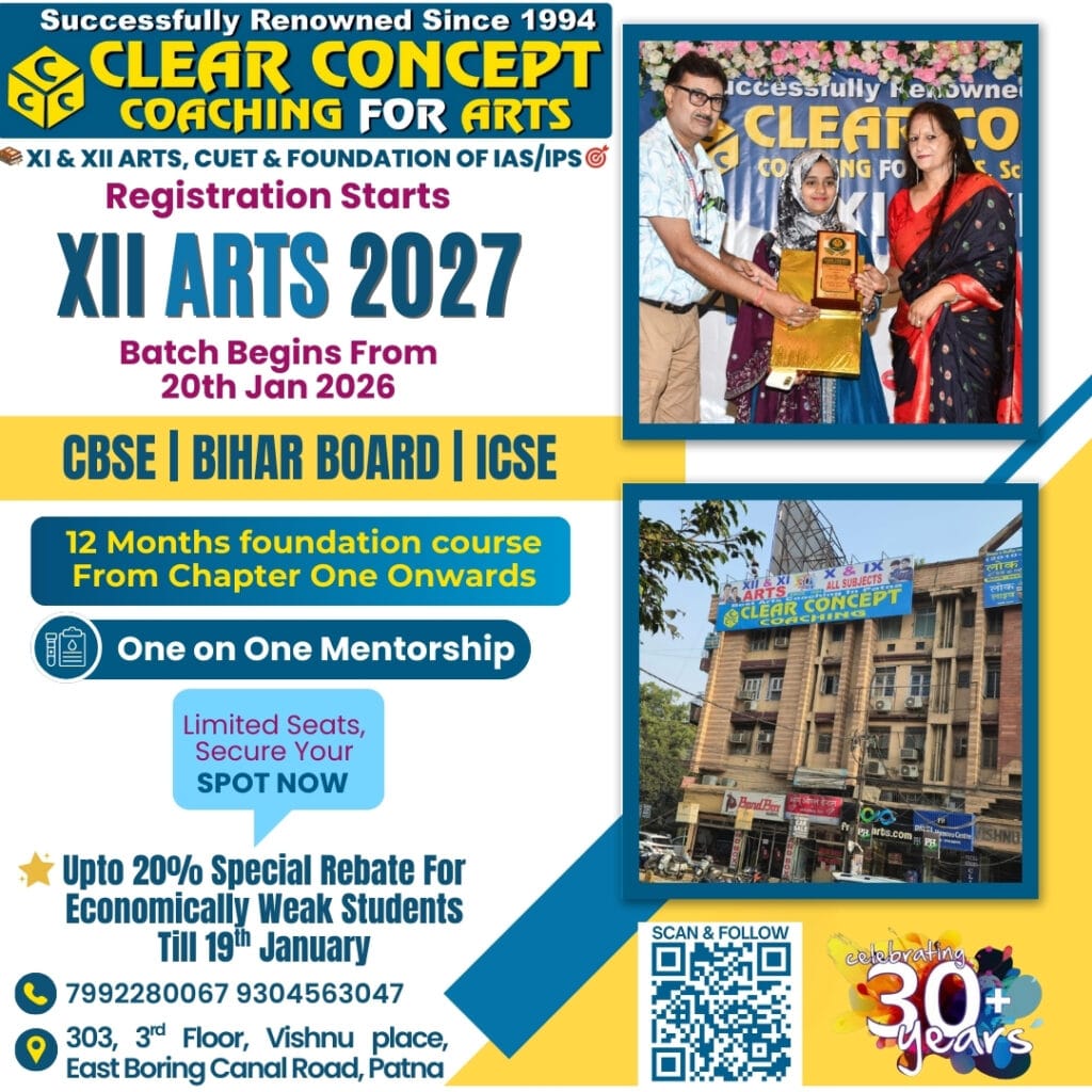 If you are looking for reliable, result-oriented, and future-focused Arts coaching in Patna, Clear Concept is the right destination.