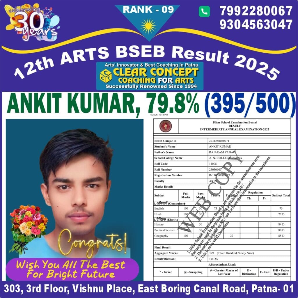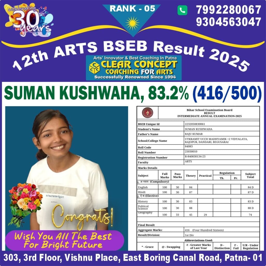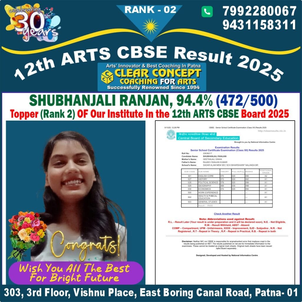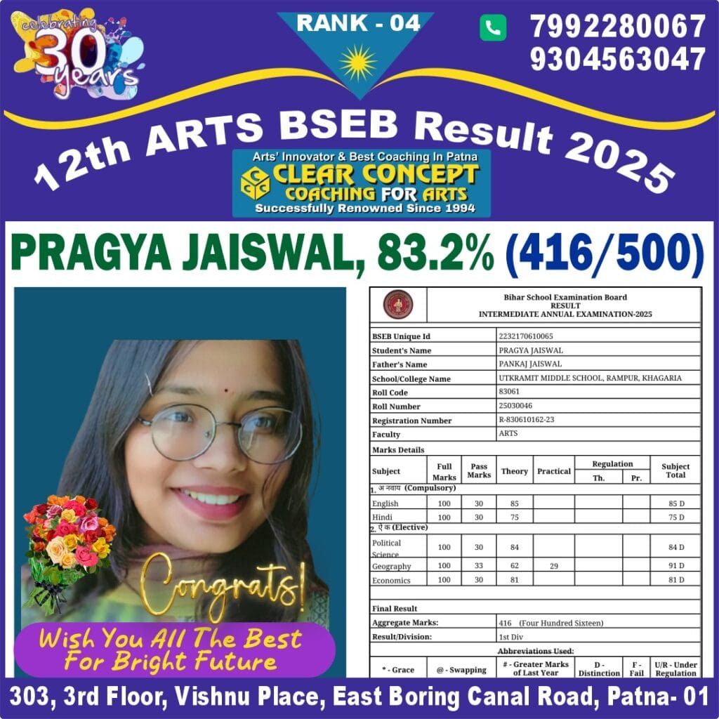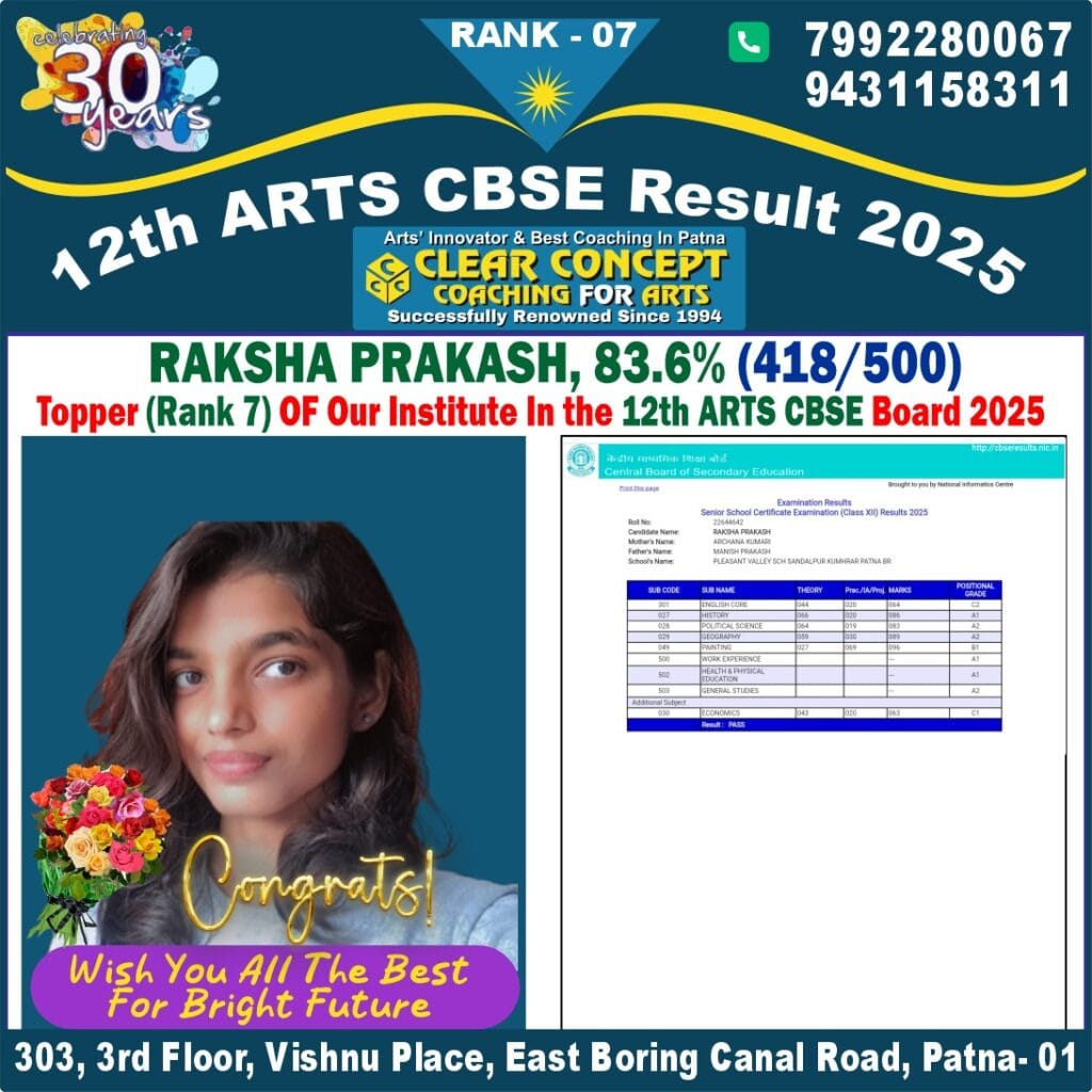 Our CBSE 12th Arts 2025 Toppers Our Bihar Board 12th Arts 2025 Toppers Our institute has been producing toppers since inception, here are some of our toppers: