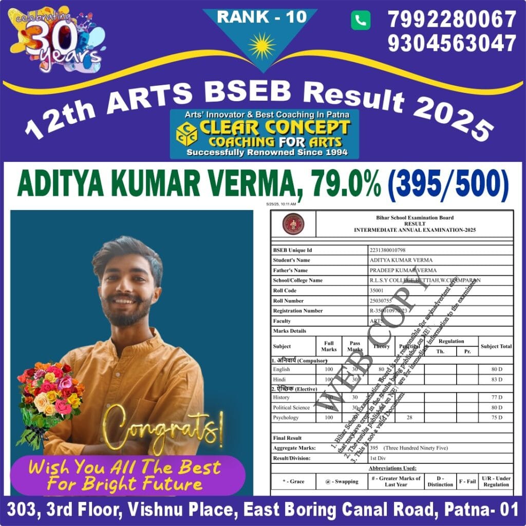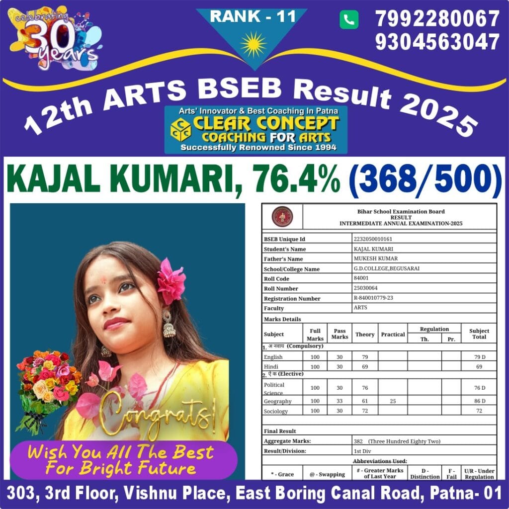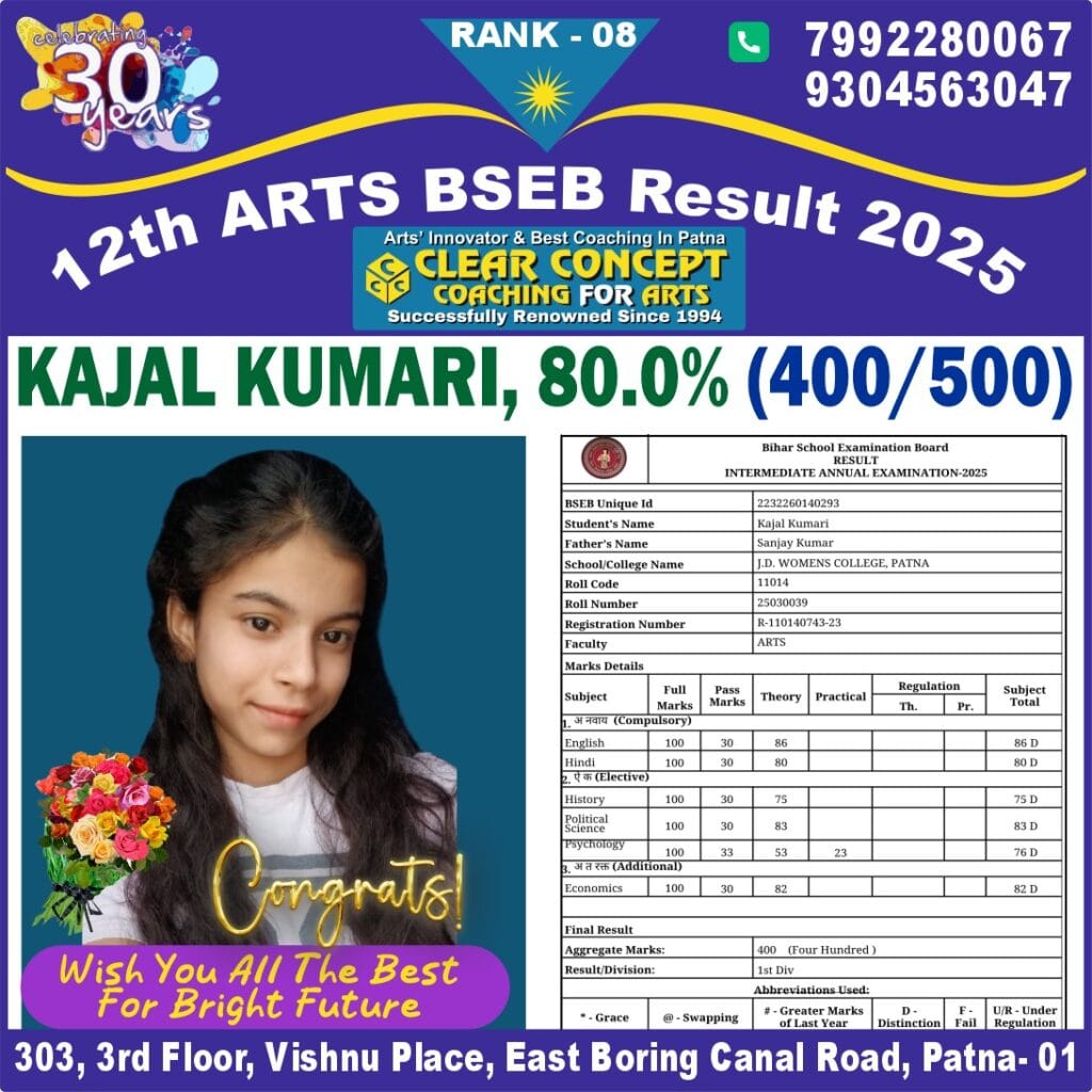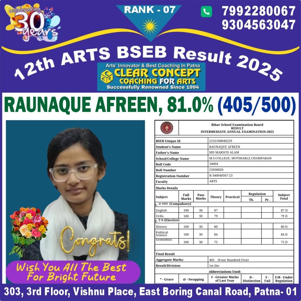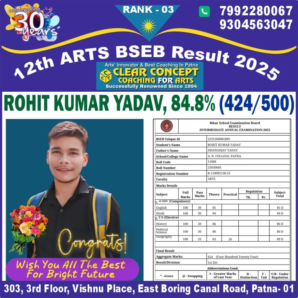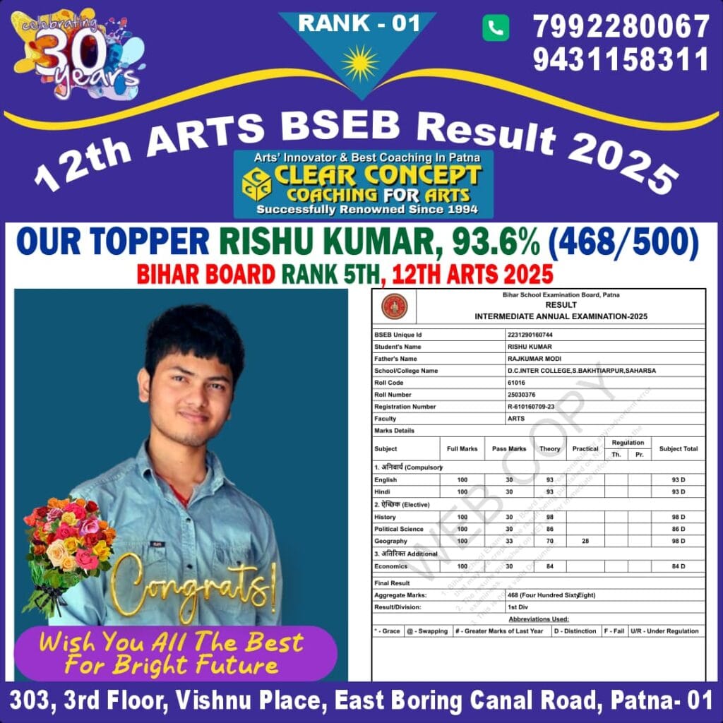 Our CBSE 12th Arts 2025 Toppers Our Bihar Board 12th Arts 2025 Toppers Our institute has been producing toppers since inception, here are some of our toppers: