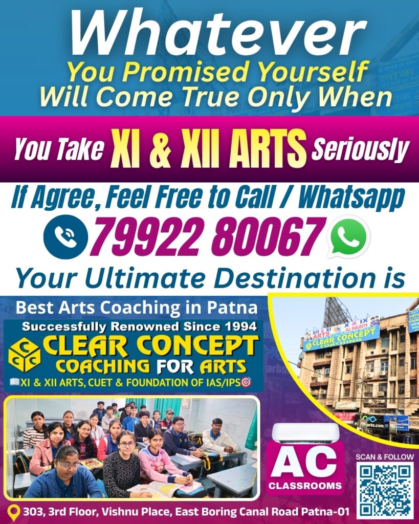 This is where the right coaching makes a difference. Clear Concept Best Arts Coaching in Patna is dedicated to helping students understand subjects deeply rather than memorizing blindly. With experienced faculty, concept-based teaching, regular assessments, and personal attention, students gain both academic strength and self-belief.